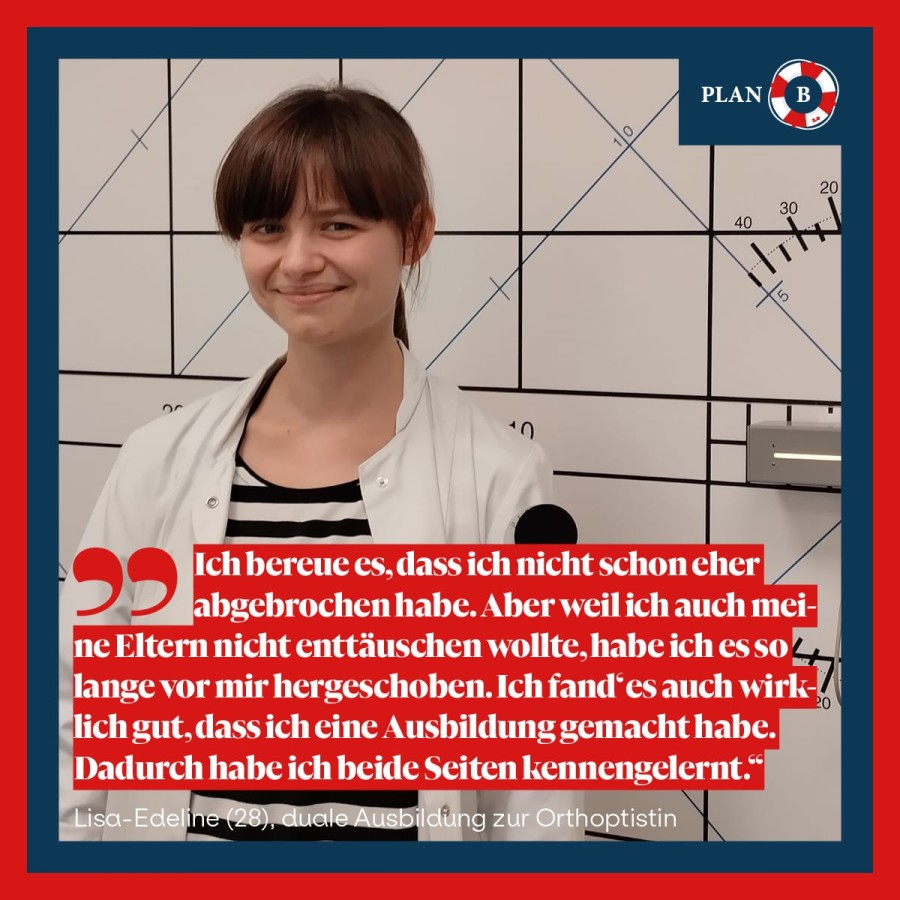 In unserer Broschüre Kein Land in Sicht? Neuorientierung bei Studienzweifeln und Studienabbruch (Stand 01/2025) finden Sie eine Vielzahl von beruflichen Möglichkeiten - sei es bei Zweifeln am Studium oder nach einem möglichen Studienabbruch. Wir geben Ihnen Informationen über Alternativen wie zum Beispiel zum Studiengangwechsel, dualen Studium oder zur schulischen bzw. dualen Ausbildung an die Hand, mit denen Sie informiert Entscheidungen treffen können. Ehemalige Studierende teilen ihre Erfahrungen und berichten, wie sie die herausfordernde Phase des Studienabbruchs gemeistert haben. Sie erzählen, wie alternative berufliche Wege für sie zu einer neuen Perspektive wurden.